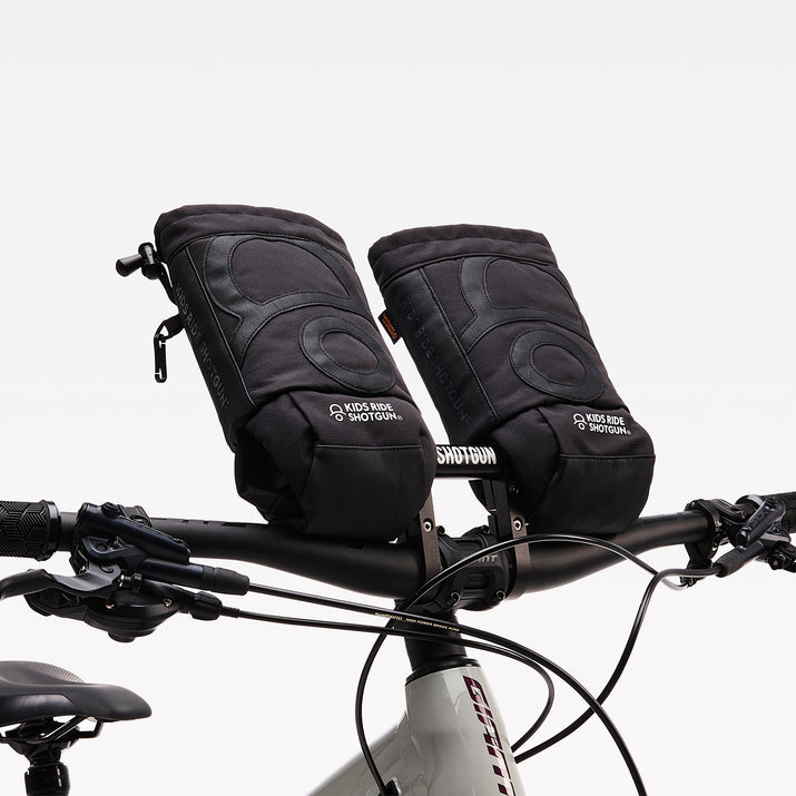 Keep little hands warm, and extend your time on the trail. Our children’s pogies are designed for use with all Shotgun seat and handlebar products, and are made for winter rides, cold mornings – or even snow!