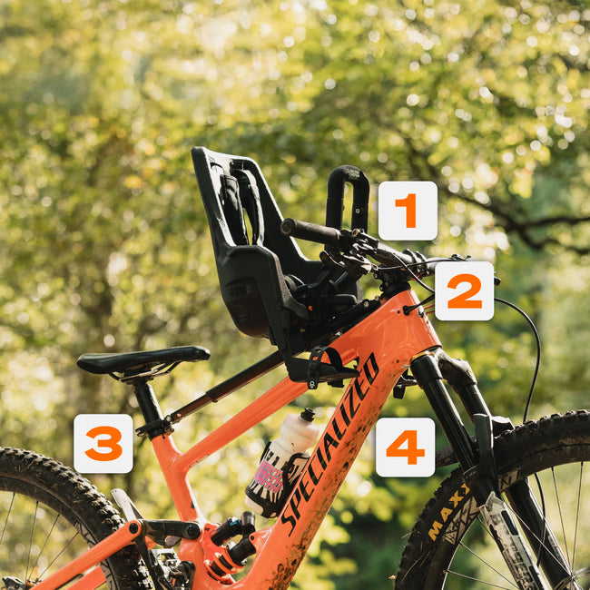 Introducing the world’s first 2-in-1 child bike seat designed specifically for MTBs. Transforming from the harnessed setup for 9-24 months, into the Pro seat for kids 2-5 years. One seat, two setups, four years of adventure.